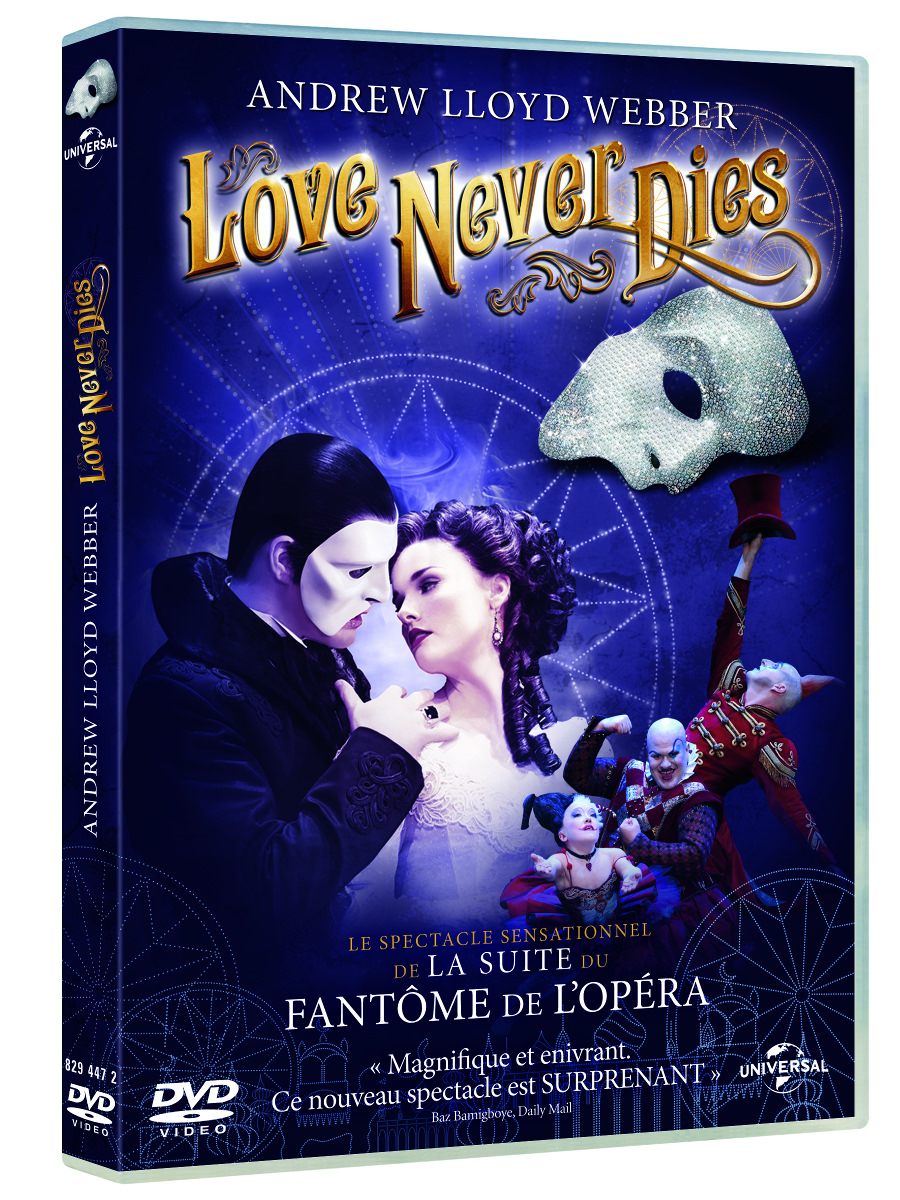 Filmé au Regent Theatre de Melbourne en 2011, Lover Never Dies permet de continuer l’émotion du Phantom of the Opera en retrouvant dix ans après les événements de l’Opéra de Paris Christine (A. O’Byrne), Raoul (S. Gleeson) et le fantôme (B. Lewis) à New-York. La mise en scène australienne (S. Phillips), plus aboutie que celle donnée à Londres, permet de mieux rentrer dans l’atmosphère spectaculaire et quelque peu gothique de cette pièce. Ce DVD ravira les fans du fantôme et les âmes romantiques. (commandez le dvd ici, le blu-ray ici)