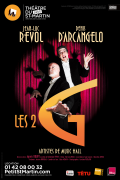 Cela commence comme Le Cabaret des hommes perdus, la comédie musicale de Christian Siméon et Patrick Laviosa, mise en scène par Jean-Luc Revol, par une chanson de bienvenue où l’on vous demande de vous installer confortablement et surtout de bien boucler vos ceintures car ça va secouer ! Sauf qu’il s’agit ici de deux hommes perdus… de vue, Georges et Gaëtan, artistes imaginaires de music-hall, couples à la scène comme à la ville, qui font leur grand retour pour une dernière tournée. Les 2G enchainent anecdotes amusantes, chansons savoureuses à textes improbables sur des airs désuets, caricatures de numéros de cirque, le tout entrecoupé de scènes de ménage à mettre au Panthéon des arguments en faveur du « divorce pour tous » ! Les familiers de Madame Raymonde retrouveront, avec délectation, un Denis D’Arcangelo plus extrême que jamais, maniant l’absurde et la gouaille au plus juste. Jean-Luc Revol et lui forment un duo attachant et surtout hilarant, à condition – autant le dire, comme eux, crûment – de ne pas être réfractaire aux allusions sphinctériennes. C’est un bel hommage au music-hall et à l’interprétation de la chanson à texte que nous offrent ces 2G-niaux là !