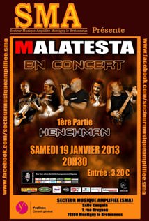 Originaire de Rambouillet, Malatesta distille sur les scènes depuis 13 ans son rock puissant aux textes en français au socialisme libertaire. Au cœur de la scène française actuelle, le groupe s’est forgé une réputation de bête de scène au contact des plus grands (No One Is Innocent, Loudblast, Lofofora). MALATESTA qui vient de rééditer son dernier EP, présente sur scène en exclusivité quelques titres de son prochain album en cours de réalisation en autoproduction, prévu à la sortie en septembre 2013.