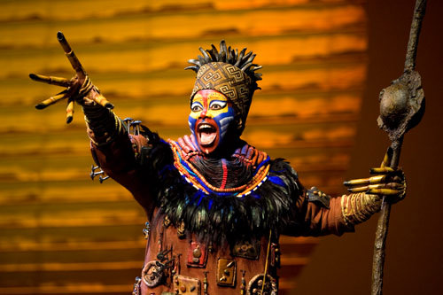 Adaptation scénique du dessin animé éponyme de Disney,The Lion King est mis en scène par l’inventive Julie Taymor qui a misé sur un original dispositif de masques, de marionnettes, de suggestions imagées et de costumes somptueux pour incarner chaque élément du film.